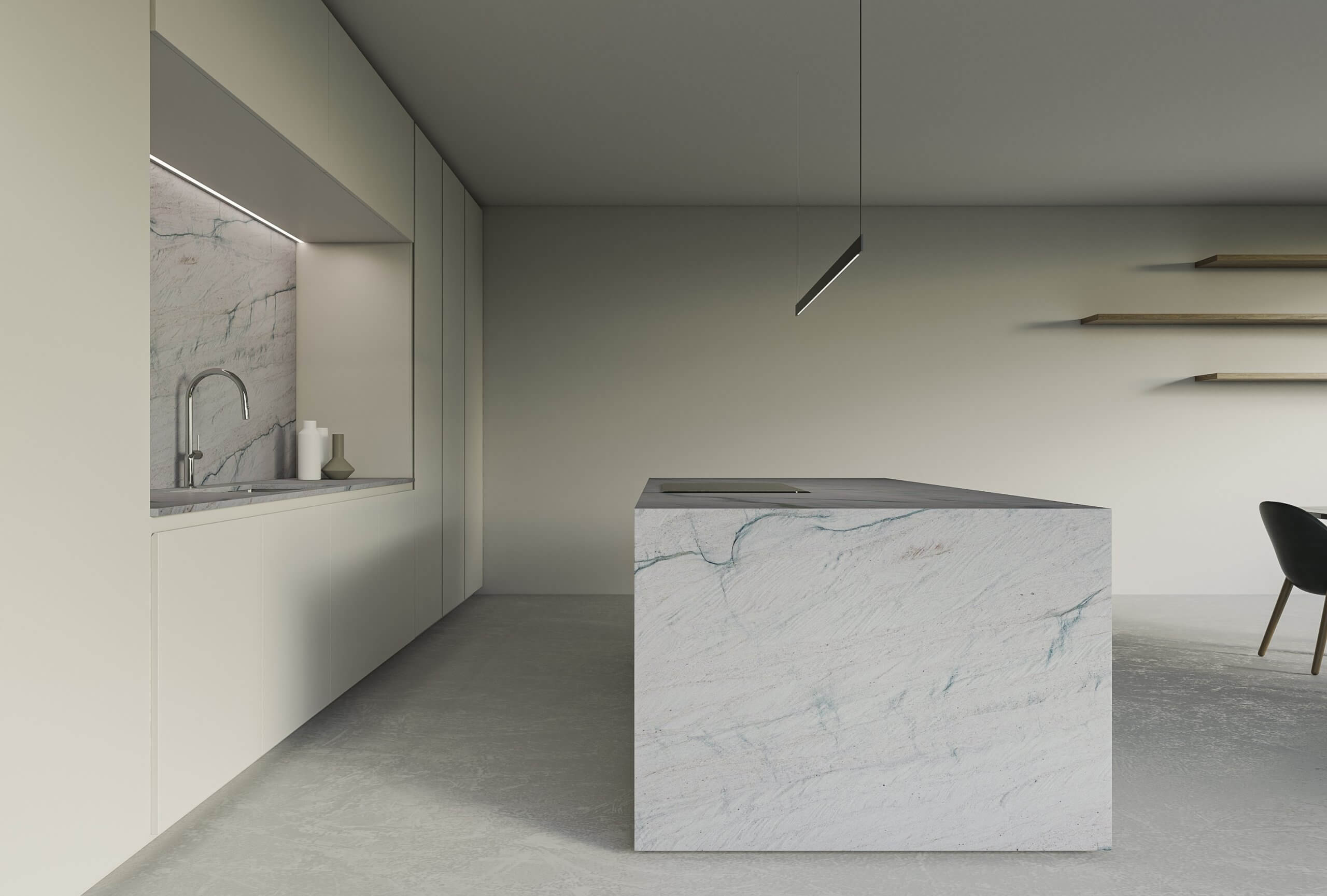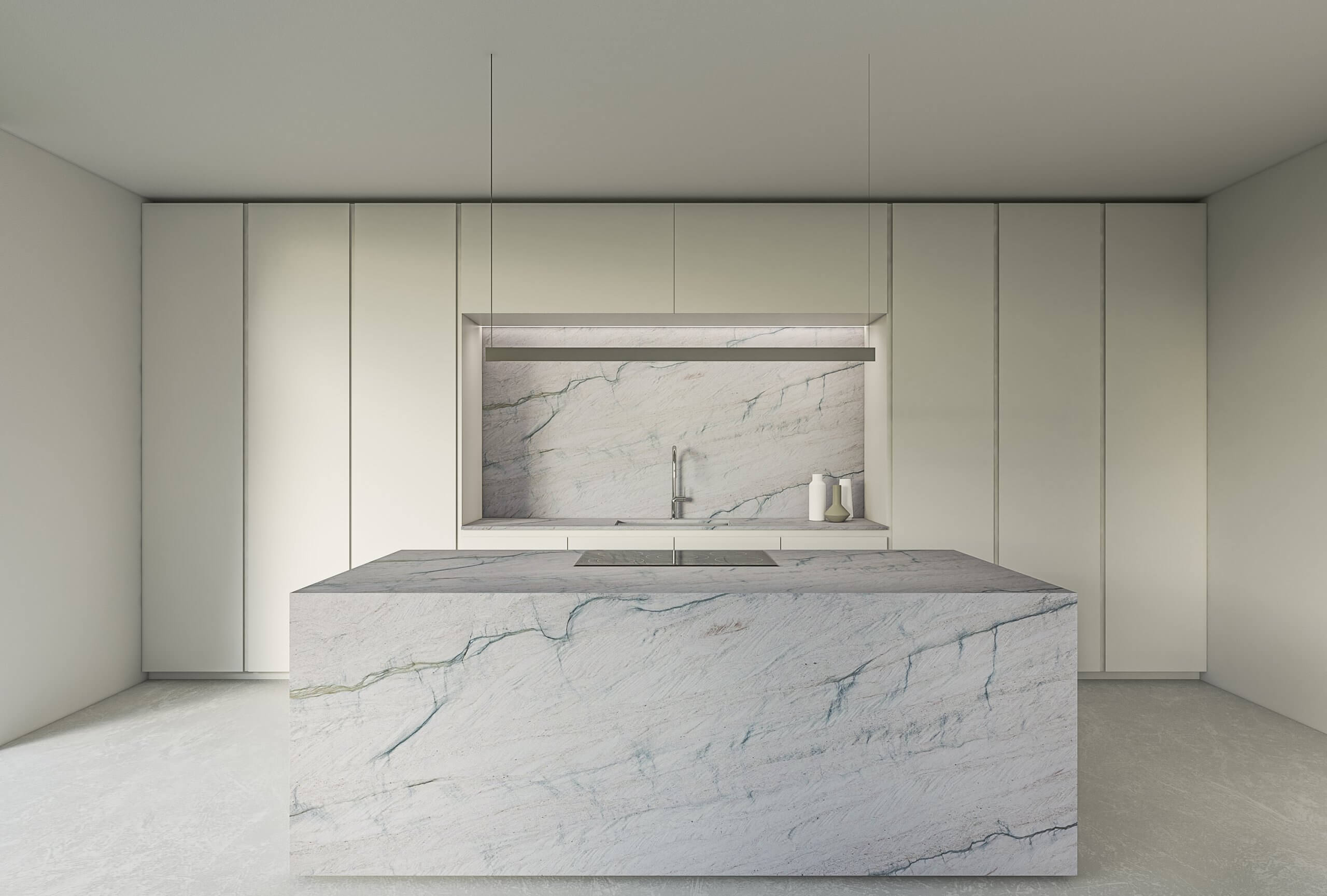 Meridien ist eine hochwertige brasilianische Quarzit mit heller Grundfarbe und fließenden Aderungen in Beige- und Grautönen. Elegant und widerstandsfähig eignet sie sich ideal für Küchenarbeitsplatten, Bäder und moderne Innenverkleidungen und verbindet ästhetische Raffinesse mit hoher technischer Leistungsfähigkeit.